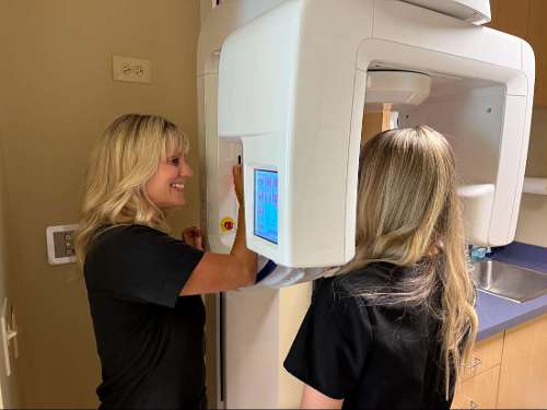 This technology uses a narrow x-ray beam and continuous movement of the film or digital sensor to produce a complete image of all teeth, the upper and lower jaws, the temporomandibular joints, and the sinuses. The process takes approximately 12-20 seconds and is particularly valuable for treatment planning, evaluating wisdom teeth, detecting jaw abnormalities, and efficiently assessing overall dental health.
